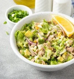 Grab a large mixing bowl. Drain tuna and add it to the bowl. Add all other ingredients.